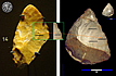 A: Ovale vuistbijl EE.72-7, met daarnaast de drie oppassende stukken B: EE.72-11