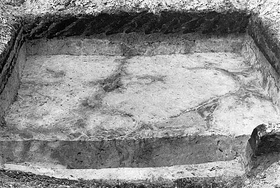 Concentratie A Noordwestelijke helft van de rechthoek na de BAI-opgraving, gezien vanuit het ZO. Foto overgenomen uit Palaeohistoria XV - 1973