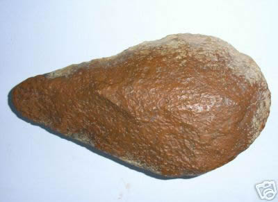 Kant 1. Het fraaiste voorbeeld van wat wind beladen met zand en stof, abrasie, met artefacten doet die lange tijd aan de oppervlakte hebben gelegen, is deze vuistbijl uit de Sahara, het ultieme gebied voor zandstormen. Een zandstorm kan ook nogal wat schade aanrichten aan bv. auto's, vooral als er sprake is van een echte zandstorm, met tot 2 meter hoogte opspringende zandkorrels. Daardoor wordt alles langzaam maar zeker gezandstraald. Is de windsnelheid hoog, dan is binnen 48 uur alle lak van de carrosserieën geschuurd. Bovendien zijn de ruiten mat en ondoorzichtig, zodat ze verwijderd moeten worden om verder te kunnen rijden. De vuistbijl-windkanter van de foto heeft ongetwijfeld meerdere van dergelijke stormen meegemaakt. De bijl was enige tijd geleden te koop op ebay. De gepresenteerde vuistbijl is als zodanig nog maar nauwelijks te herkennen. Hij zal dan ook wel niet verkocht zijn. Er is enige glans zichtbaar, maar dit moet niet verward worden met windlak dat een doorzichtig afzettingslaagje is dat hyaliet genoemd wordt en een chemische oorsprong heeft. De omtrekvorm van de bijl is nog ongewijzigd, maar van de afslagnegatieven is niet veel meer overgebleven. De grote zandstraalmachine heeft alle opstaande ribben weg geblazen, geabradeerd. Vanaf de punt links, splitsen twee vlakken zich bij de lichter gekleurde verhoging en die heeft een driehoekvorm gelijk als op windkanters het geval is. Vooral het vlak dat bovenlangs loopt heeft een duidelijke scheidingsrand, ook gelijk als op een windkanter.